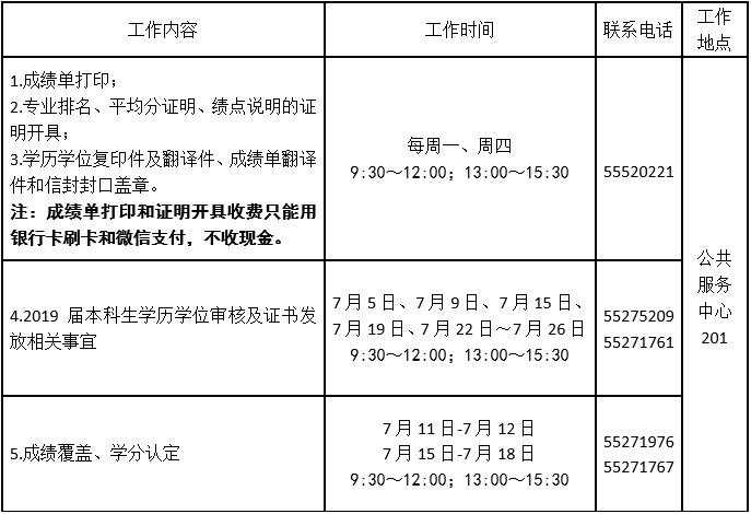 根据学校《关于2019年暑期安排的通知》,结合教务处工作具体情况,现将暑期(7月3日~8月21日)本科教学学生服务工作安排通知如下: