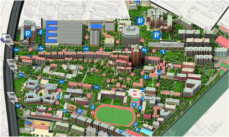 迎新日军工路1100号校区道路交通指引示意图
