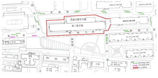 在此我们提醒在校工作和学习、生活的师生们,请勿靠近施工区域,注意出行安全。拆除施工给大家带来不便,敬请谅解。请广大师生相互转告,谢谢配合。