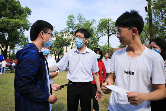 校领导一行到报到现场看望新生