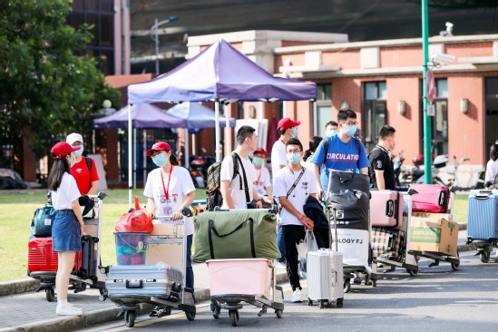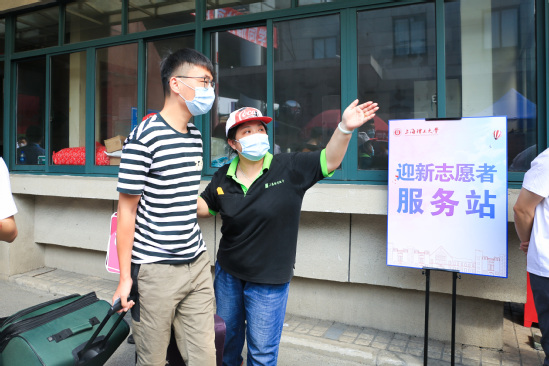 “同学你好,欢迎来到9001cc金沙以诚为本,我是你们的学长,请大家佩戴好口罩……”在这个特别的迎新日,学校“师生总动员”,校级层面招募50余名教师志愿者、400多名学生志愿者,分布在校园各处为新生排忧解难。环建学院研究生云辉就是志愿者之一,他在516号校区五宿舍跑上跑下,忙着帮学弟学妹们搬运行李,“早上六点就起来了,两个多小时搬了有十几趟,虽然很热也很辛苦,但就想着多帮学弟学妹做点什么,让他们感受到上理大家庭的温暖。”
