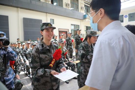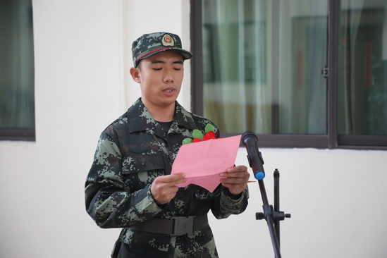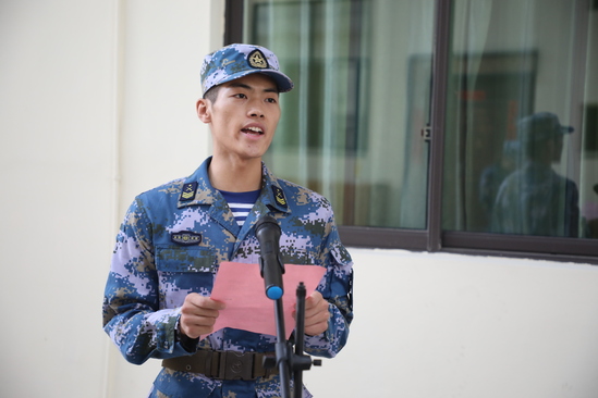 退伍学生代表刘鹏川同学发言。他与新兵们分享三点收获:一是永不言弃,不要说“我不行”;二是虚心接受批评,保持积极心态;三是珍惜荣誉,不要退缩,去勇敢展现自己。入伍新兵、应届毕业生田擎代表全体入伍学生发言。他表示,今后在部队中会顽强拼搏,永不言弃,向优秀军人学习,承载着学校师生的寄托与嘱咐,用自己的行动捍卫祖国,待两年后将携荣誉以归校园。