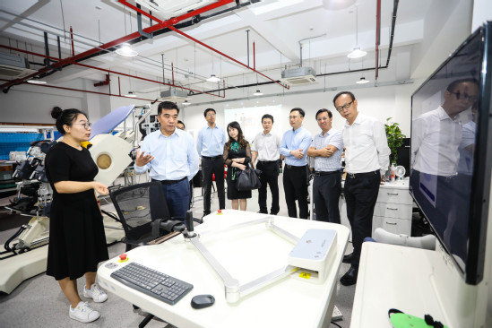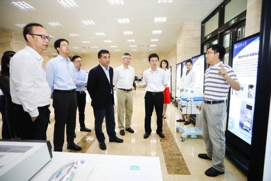 签约仪式前,王兴鹏一行参观了先进制造大楼和光电学院大楼相关医疗科技成果展示、研究中心及科研实验室。