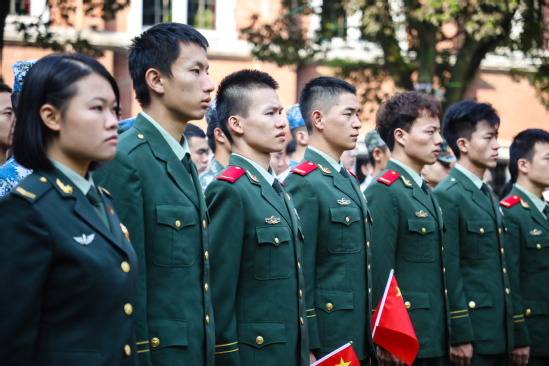 为庆祝新中国成立71周年,激发全校师生厚植爱国情怀、增强爱校情感,10月1日清晨,学校在北区国旗广场举行“9001cc金沙以诚为本庆祝新中国成立71周年升旗仪式”。党委书记吴坚勇,校长丁晓东,党委副书记、纪委书记刘道平,党委副书记孙跃东,离退休老干部、老领导代表, 各党政部门、各学院党组织负责同志,师生代表等200余人参加升旗仪式。党委副书记、副校长盛春主持仪式。