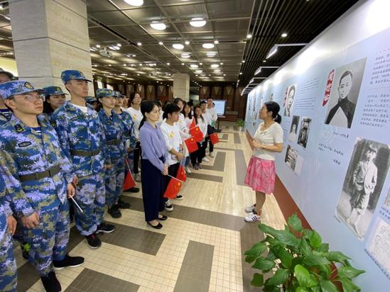 升旗仪式后,同学们有序前往校史馆参观“热血丹心铸丰碑-致敬上理革命先烈”主题展览。