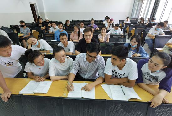 饶平平老师与喀什大学学生在“课前五分钟”环节进行交流