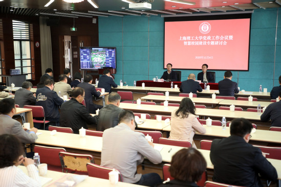 11月4日下午, 学校在图文信息中心第一会议室召开党政工作会议暨智慧校园建设工作研讨会。全体校领导,全体中层正职干部、有关部门副职干部,学生校长助理代表出席会议。会议由校长丁晓东主持。