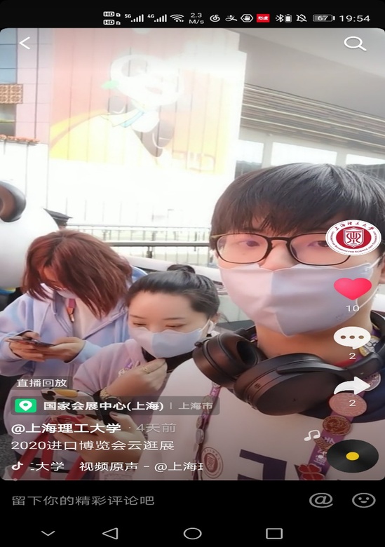 出于防疫要求,进博会期间,校党委书记吴坚勇、校长丁晓东通过视频连线亲切问候了“小叶子”们,叮嘱同学们做好个人防护工作,多看多学,在做好进博会的各项志愿服务工作的同时,展示上理青年的责任担当。