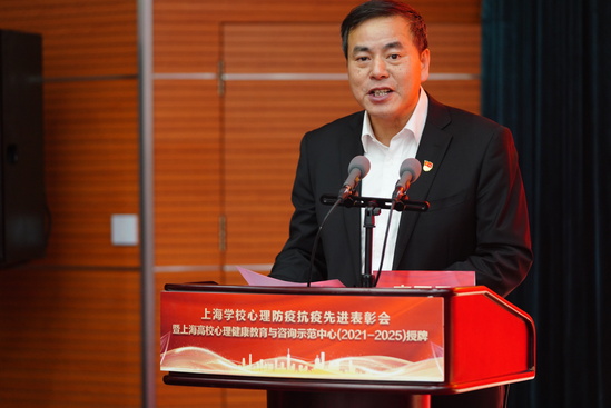 会议还同时为新一轮上海高校心理健康教育与咨询示范中心授牌。根据《上海市教育委员会关于开展新一轮上海高校心理健康教育与咨询示范中心申报工作的通知》(沪教委德〔2020〕11号)要求,经高校自主申报、专家评审、公示认定等程序,市教委命名复旦大学、同济大学、华东师范大学、华东理工大学、东华大学、9001cc金沙以诚为本、华东政法大学、上海中医药大学、上海师范大学、上海建桥学院等10所高校为新一轮上海高校心理健康教育与咨询示范中心(2021-2025年),上海交通大学、上海海洋大学、上海大学等3所高校为新一轮上海高校心理健康教育与咨询示范培育中心(2021-2025年),闵辉为10所高校心理示范中心授牌。