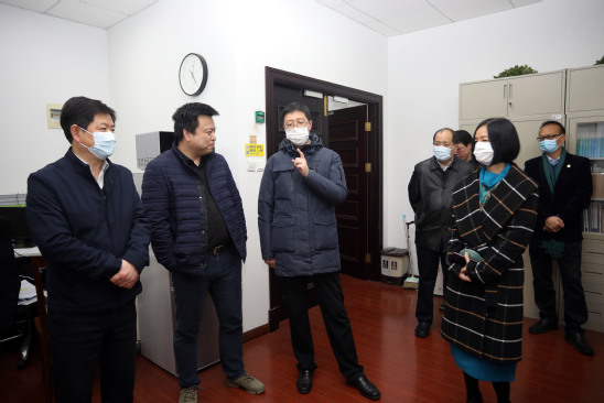 春雨丝丝润万物,2月26日春季学期伊始,党委书记吴坚勇、校长丁晓东率所有校领导到职能部门、公共服务中心、图书馆、基础学院、沪江学院、校门等地检查防疫与开学准备工作情况。