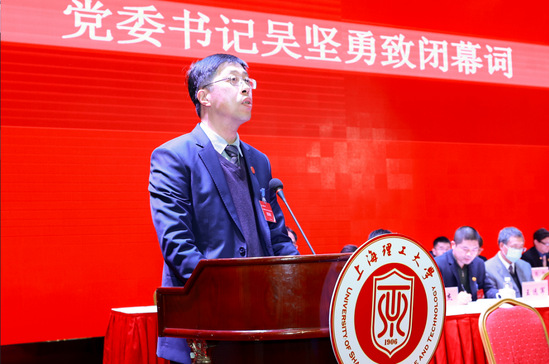 校党委书记吴坚勇在总结讲话中表示,过去的这一年极不平凡,我们高举习近平新时代中国特色社会主义思想伟大旗帜,坚持疫情防控与事业发展“两手抓、两手硬、两手赢”,收获了来之不易的奋斗成果。2021年是中国共产党成立100周年,是“十四五”发展的开局之年,是我国全面建设社会主义现代化国家关键之年,也是上海市启动新一轮高水平大学建设、高峰高原建设的元年。对学校而言,是我们实现第八次党代会“第二步”发展目标的起步之年。可以说,做好今年的工作,意义重大而深远。借此机会,吴坚勇向全体教职员工提出了三点要求:一是要共同围绕立德树人根本任务,不断提升“三全育人”综合改革成效,充分发挥课堂教学的主渠道作用,不断推进思想政治教育改革创新,不断提升育德意识和育德能力,充分发挥师德师风在立德树人中的潜移默化功能;二是要围绕“十四五”开局起步,以改革促进学校事业高质量发展,深化教育评价改革,激发教师干事创业活力,坚持以师生为本,切实提升师生获得感;三是要进一步凝心聚力,充分发挥教代会和工会凝心聚力促发展的作用,围绕中心大局,凝心聚力开创教代会工作新局面,加强自身建设,不断提高新时代工会开展工作的本领。