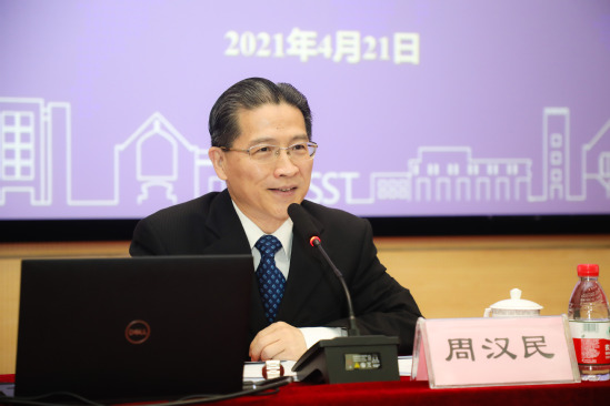 为深入开展党史学习教育,凝心聚力做好“十四五”开局起步,4月21日上午,党委中心组在综合楼报告厅举行扩大学习会,听取全国政协常委、民建中央副主席、上海市政协副主席、民建上海市委主委、上海公共外交协会会长、上海公共外交研究院理事长、金沙官网特聘教授周汉民所做的“当前的形势与任务”专题辅导报告。全体在校校领导、中层干部、辅导员、党校优秀年轻干部培训班学员、外语学院师生代表参加报告会。党委书记吴坚勇主持会议。