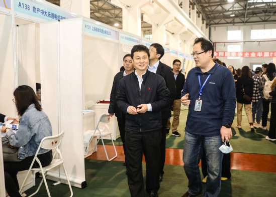 4月23日下午,“百年新征程 共筑青春梦”9001cc金沙以诚为本2021届毕业生春季线下招聘会(第2场)在体育活动中心举办,校党委书记吴坚勇,校长丁晓东,校党委副书记、副校长盛春到招聘会现场看望用人单位、了解用人需求,并与应聘毕业生亲切交谈,询问应聘进展情况。各学院书记、院长、毕业班辅导员也到现场与用人单位就开拓就业市场、深化校企合作、促进学生就业进行深入交流。