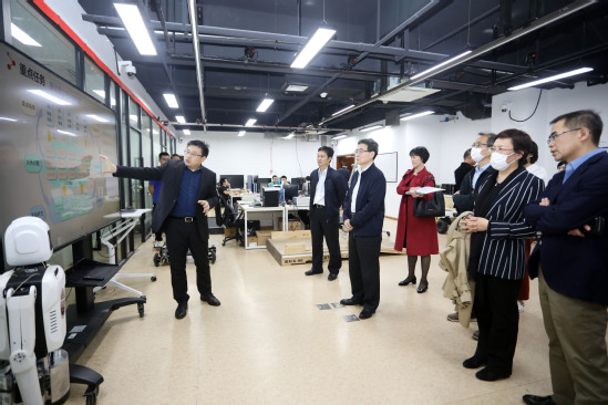 4月28日下午,上海市人大常委会委员、教科文卫委主任委员苏明率队来校进行《上海市推进科技创新中心建设条例》执法检查座谈。校长丁晓东、副校长刘平陪同参观上海高端医疗装备创新中心医工交叉成果展示、机器智能研究院实验室,并出席座谈会,相关职能部门、大学科技园负责人及教授代表参加座谈。