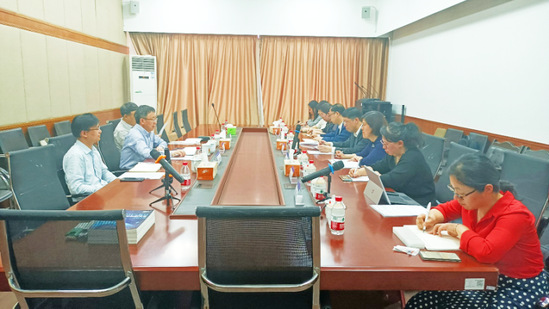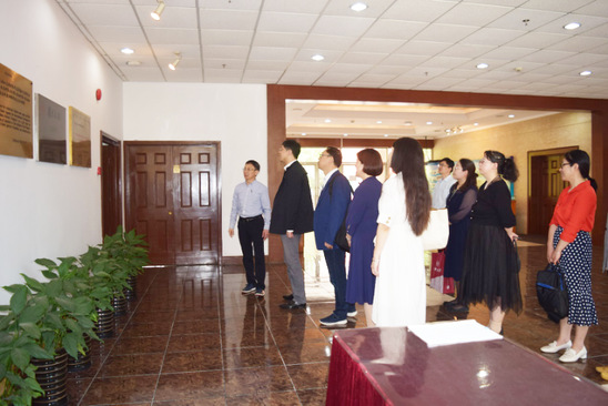 吴坚勇一行首先参观了美国研究中心展厅,听取了有关中心发展沿革、成果建设及国际交流等方面的介绍。