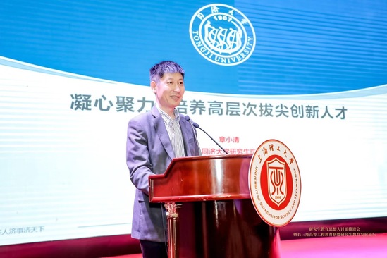 上海市教委副主任毛丽娟、学位办主任束金龙,校长丁晓东,校党委副书记、副校长盛春,副校长刘平,副校长张道方,副校长张华出席,复旦大学研工部部长罗英华、同济大学研究生院副院长章小清及长三角高等工程教育联盟高校研究生院院长、研工部部长和研究生党支部书记代表等参加,金沙官网全体中层正职干部、各学院相关负责人等参会。