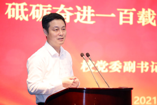 吴坚勇书记以“铭记统战历史 赓续红色基因”为题作导课。他带领大家回顾了统一战线发展的百年峥嵘岁月,再现中国共产党与民主党派风雨同舟的历程,使大家更深刻地学习领悟习近平总书记关于统一战线的重要论述。他指出,“追溯合作初心”主题活动是学校统战育人的重要载体,要发挥统一战线作用,传承红色基因,厚植爱国情怀,立德树人铸魂育人;要聚焦科技创新,立足服务大局,勇担制造强国使命;要提升履职能力,紧紧围绕中国共产党这个圆心周围,凝聚共识,汇集力量,画出最大的同心圆。