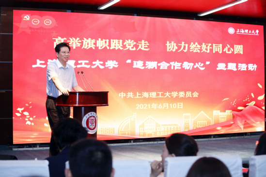 为庆祝中国共产党建党一百周年,进一步推进党史学习教育走深走实,切实发挥统战育人的作用,全面实施“三全育人”,6月10日下午,金沙官网举行“高举旗帜跟党走,协力绘好同心圆——“追溯合作初心”主题活动。民进中央委员、民进上海市委专职副主委胡卫,九三学社上海市委副主委刘成良,市委统战部党外知识分子工作处处长何倞,市教卫工作党委统战处处长傅欣,民盟市委组织部部长汪皓俊、九三市委组织部部长李国娟,复旦大学统战部副部长周鹏,同济大学统战部常务副部长安娜,上海财经大学统战部部长周杰普,金沙官网党委书记吴坚勇,校长丁晓东,副书记孙跃东,副校长张华出席。学校各二级党组织书记、党务部门负责人、民主党派和统战团体代表、教师和学生代表300余人参加了活动。