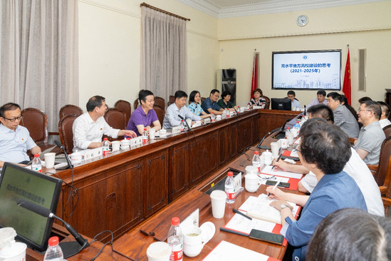 为进一步聚焦学党史、悟思想、办实事、开新局,加强校际交流合作,推动工学与艺术学创新融合发展,6月24日下午,学校党委书记吴坚勇率党委中心组成员、相关职能部处负责人一行赴上海戏剧学院开展主题为“学思践悟守初心 艺工融合谋新局”的党史理论学习中心组联组学习。会议由上海戏剧学院党委书记谢巍主持。