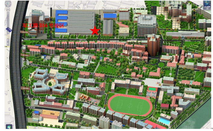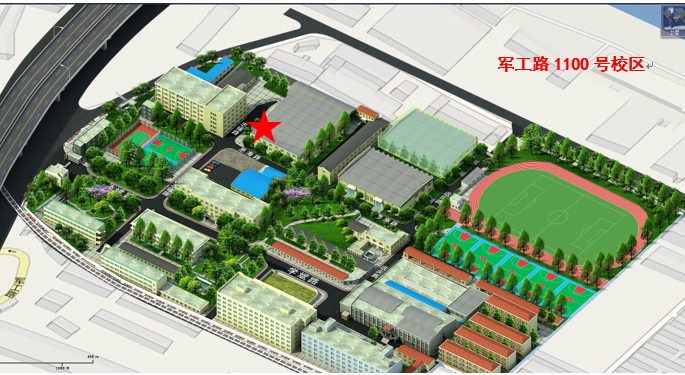 军工路516号校区(红五角星所示体育活动中心为报到点)