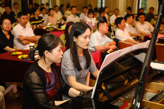 在交流发言期间, 金沙官网青年教师张宇迪和嘉宾闫红叶为大家献上了欢快的钢琴四手联弹《自由探戈》,沪江之声教工合唱团代表献唱了一首女声小组唱《飞来的花瓣》,会场气氛欢乐和谐。