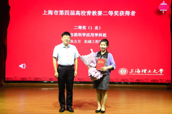 张华为第四届上海市高校青年教师教学竞赛二等奖获得者焦古月颁发证书