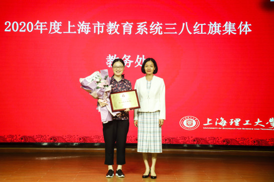 蔡永莲为上海市教育系统三八红旗集体代表颁奖