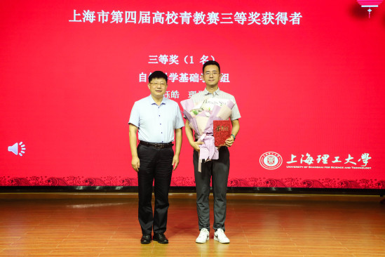张华为第四届上海市高校青年教师教学竞赛三等奖获得者李钰皓颁发证书