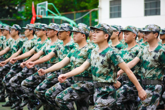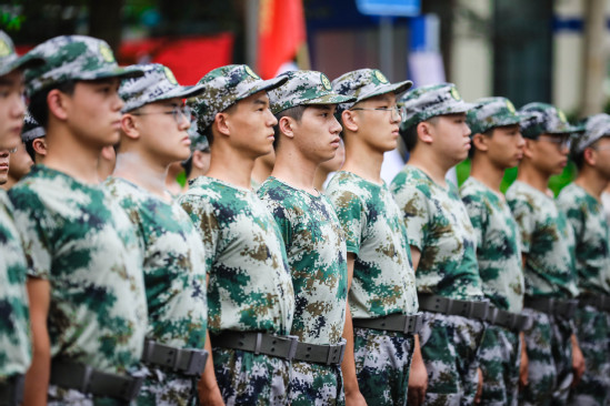 迷彩熠熠,黄浦江畔军号嘹亮;红旗飞扬,沪江园中步履铿锵。9月5日起,学校在1100号校区、516号校区和复兴路校区开展2021年军训工作。武警上海市总队执勤第二支队64名承训教官和金沙官网24名退伍大学生教官承担本次军训训练任务,4100余名学生划分为4个营、14个连队、69个排进行训练。他们每日迎着晨光起,踏着暮色归,带着勇气和信心与“理“一起共赴这场青春试炼。