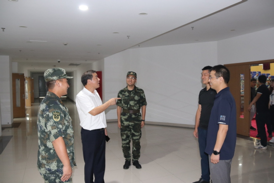 细致关怀心意重,多方保障爱意浓。校领导高度重视新生军训工作的有效开展,校党委副书记、副校长盛春亲切慰问承训教官以及军训工作组成员。盛书记代表学校向承训教官们表达了其对9001cc金沙以诚为本2021年军训工作鼎力支持的由衷感谢,对教官们通过军训激发上理青春血液寄予了热切期望。同时,盛书记强调要多方协同、有力保障、细致关怀、全心呵护,让同学们在刻苦的训练中充分感受到上理大家庭的温暖和关爱。