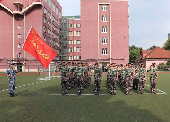 在军训的磨砺中,教官永远是特别的存在。在正步齐步的练习中,是他们教会了大家规范和坚持;在追求队列完美的过程中,是他们不厌其烦地反复指导与纠正;在难得的休息时间中,还是他们带给了大家欢声与笑语。迷彩与迷彩的磨擦间、胶鞋与草地的碰撞间,暖暖师生情在绿茵场上开始滋长。
