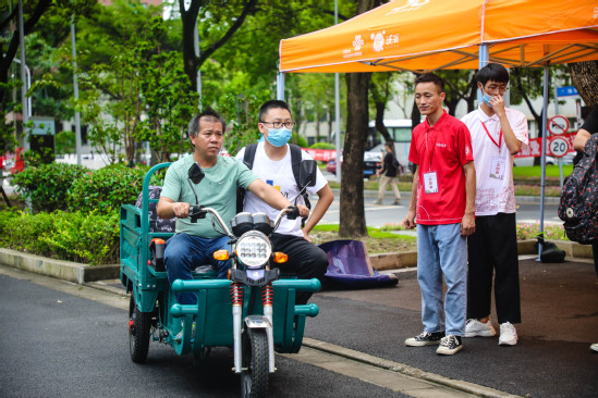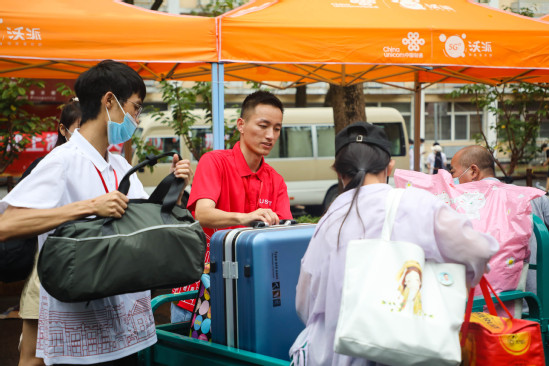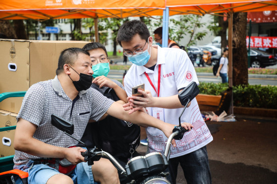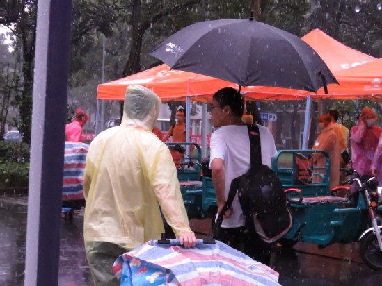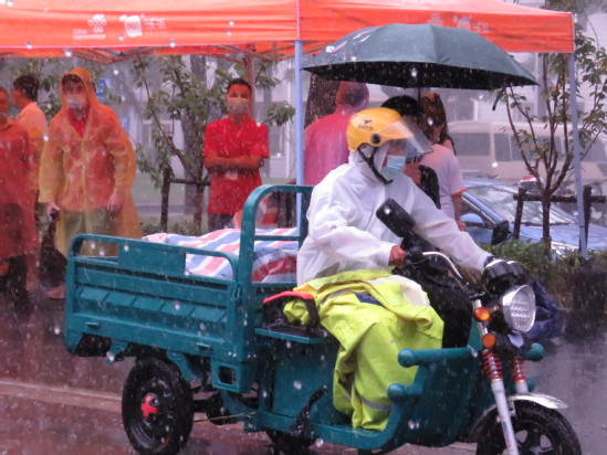 在迎新工作稳步进行时,上午十点突发暴雨,恶劣天气给学校迎新工作造成了诸多不便;但在场的每一位“红衣白衫”学生、教工志愿者都坚守在自己的岗位上,迎着暴雨查验检疫、运输行李。不管雨势多大,他们都用最灿烂的笑脸、最效率的速度,耐心的为新生们提供帮助,给予入校的第一份温暖。新生来,无论多大风多大雨,我要去接你。我们就在这“理”,等雨也等你。迎“新生”的热情是今日的暴雨浇不灭的!