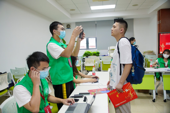 葱校园里,绿树掩映、红楼傲立,“欢迎新同学”的宣传版迎面矗立;志愿者们为新生搬运行李、答疑解惑、引导咨询;口罩、消毒凝胶等防疫物资保障安全。研究生工作部、研究生院、财务处、保卫处、后勤管理处、信息办等多部门通力合作,服务新同学。根据疫情防控有关要求,学校制定了一系列防疫工作方案和应急处置预案,并合理设计各校门、校内新生接待点,及时疏导,避免人员聚集。