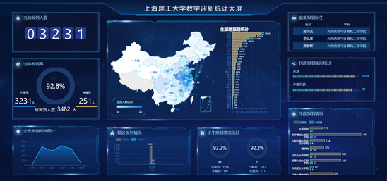 迎新大屏,实时掌握新生报到情况。