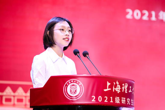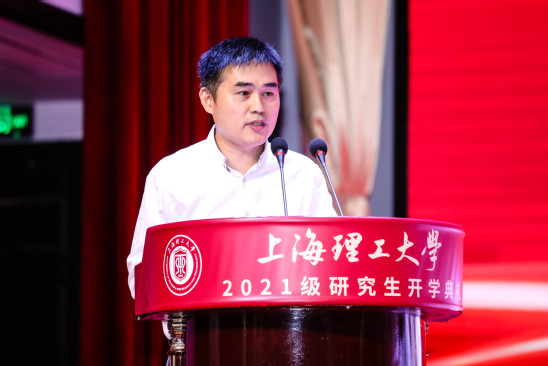 环境与建筑学院2021级硕士研究生罗雅婧作为新生代表发言,她畅谈了自己未来的研途憧憬和梦想,希望在接下来的研究生生活中,用格物致知的精神走好科研每一步;医疗器械与食品学院2019级博士研究生侯学文作为老生代表发言,他从自身经历出发,分享自己硕博学习期间的科研感悟与收获,希望上理研究生能以“勤思笃学”、“躬行实践”和“持之以恒”的态度,恪守学术道德,传承中不断创新;光电信息与计算机工程学院博士生导师张大伟教授以热门节目中的辩题“博物馆起火了,你是救名画,还是救一只小猫?”开篇,引导新生主动思考未来的研究生生活,并鼓励研究生“要有憧憬更远生活的能力,也要有崇高的志向。爱远方,更要爱当下。”