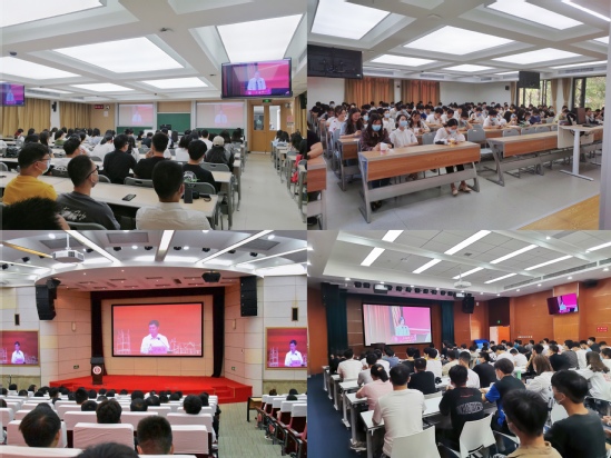 开学典礼结束后,校长丁晓东教授为新生们上“开学第一课”。丁晓东从分析新时代的特点出发到指导研究生如何奋斗在新时代,整堂课以层层递进的逻辑为新加入上理大家庭的2021级研究生发出了在上理研究生奋斗生涯的动员令。第一部分“与时代共前行”,丁晓东从历史的维度讲述了中国共产党从开天辟地到改革开放再到脱贫攻坚全面建成小康社会,实现第一个百年奋斗目标的奋斗历程,引领同学们深入思考,全面把握世界百年未有之大变局和中华民族伟大复兴战略全局。他希望广大研究生要主动关心世界局势、关心国家大事,善于在危机之中育先机,于变局之中开新局,将个人前途和命运融入国家复兴之中,投身民族和时代的洪流,刻苦学习、不懈奋斗,勇当社会主义事业的合格建设者和接班人;第二部分“与上理共成长”,丁晓东详细梳理了学校百十年发展的历史脉络,如数家珍的介绍了学校的优势特色和丰硕成果,并对上理工未来的发展规划作了展望,激励新生充分利用学校的发展平台、为自我价值的实现和学校创造辉煌而努力奋斗;第三部分“奋斗在辉煌的未来”,丁晓东通过多个发生在上理工的鲜活案例,从多方面教导研究生应时刻保持对问题的敏锐性,不断思考与探索,保持刻苦的品质,培养创新能力,全面发展和提升自己,锻炼良好的身体素质,学习扎实的知识技能,与学校共创美好未来。