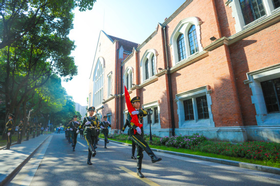 升旗仪式结束后,师生们有序前往刘湛恩烈士故居红色文化主题馆参观。