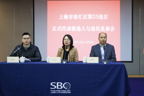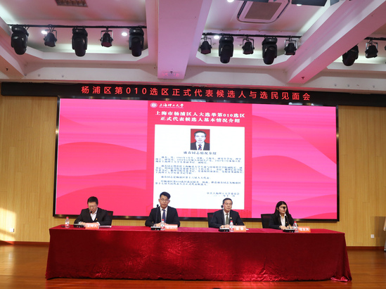 根据《选举法》和《上海市区和乡镇人民代表大会代表直接选举实施细则》有关规定以及杨浦区、徐汇区选举委员会统一部署,结合疫情防控要求,11月9日下午,杨浦区第009选区、第010选区,徐汇区第23选区正式代表候选人与选民见面会活动,分别在9001cc金沙以诚为本军工路主校区北区和南区以及复兴路校区举行,学校党委常委、党委组织部部长孙红,党委(校长)办公室副主任黄志强,徐汇区天平街道慎成居民区党总支书记方华俊分别担任各选区主持人。正式代表候选人、各选民小组长以及选民代表参加见面会。