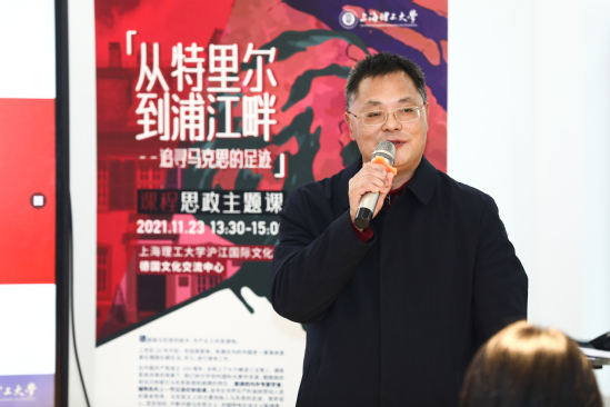 以学生展示环节为引子,在这堂精心打造的“追寻马克思的足迹:从特里尔到浦江畔”课程思政示范课上,主讲人既有校外专家学者、市委党校教师,也有校内专任教师、辅导员,共同为同学们带来一顿丰富的精神大餐。