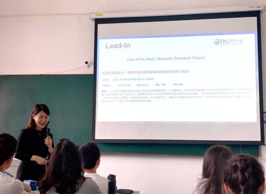 作为承担全校公共外语教学、外语专业人才培养与相关学术研究和社会服务职能的学院,全体教师在课程育人实践中一直在思考如何将思政内容自然融合于教学之中,体现中国文化中所蕴含的思想价值和精神内涵。特别是开展党史学习教育以来,学院注重以学党史、悟思想为引领,以高水平教学科研支撑高质量人才培养。左秀媛老师的“学术英语读写”课就是这样“打开”的:她通过精心挑选的有关环境问题的高影响力论文,带领学生回顾了我党生态文明建设思想的演进,指导学生整理体现绿色发展和中国担当的中英文文献,开展口头陈述和英汉互译练习,让学生在提升科研素养和学术精神的同时,增强对中国道路的认同感。