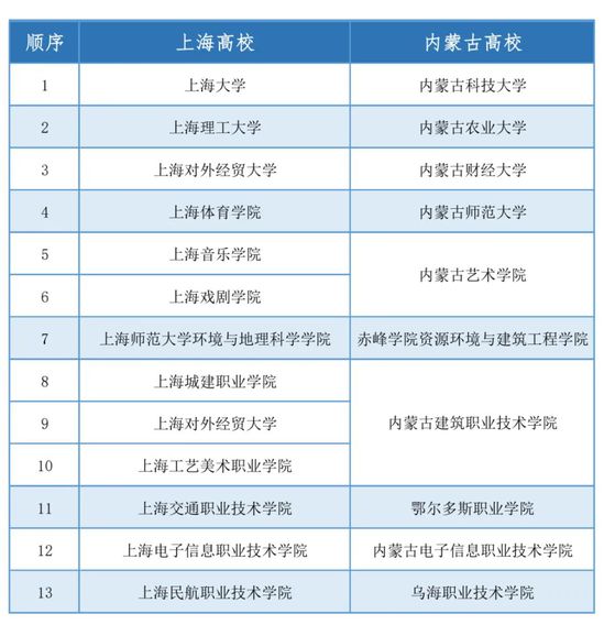 沪蒙高校结对共建合作名单