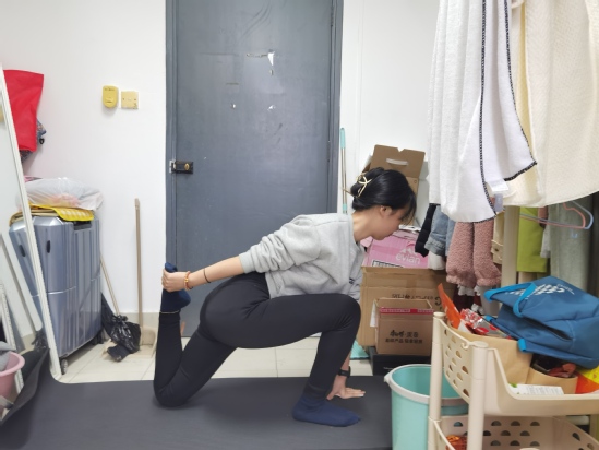 同学们在寝室进行运动锻炼