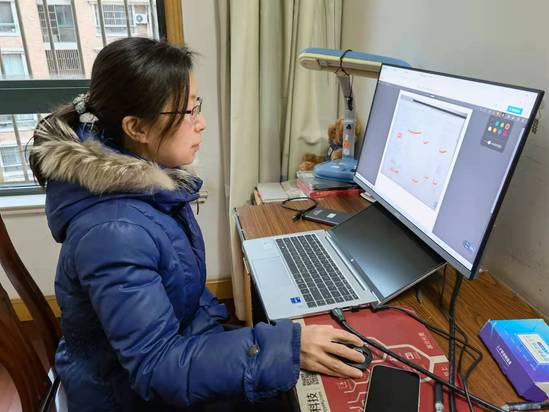 机械学院的朱文博老师已经教了20余年的《工程制图(2)》,在以往教学经验的基础上,她摸索出适合线上课程内容的教学方法。“‘不停课’本质上不仅是线上授课,而是要真正做到按点上课、节奏不乱,使教学体系完整齐全、教学质量‘不减料’。”