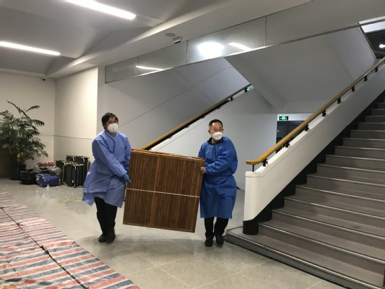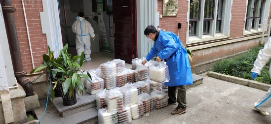 19日晚,接到支援复兴路校区的通知后,学校后勤餐饮中心立马组队,11位同志简单收拾两三件衣服收拾就出发了。他们一到复兴路餐厅就开始进行打扫、清洁和环境消杀,做好21日中午正式恢复供餐的各项准备工作,以缓解复兴路校区的餐饮供应压力。他们在人手紧张、环境制约的条件下严格执行与主校区相同的餐厅管理标准,以确保师生用餐安全。而为了避免交叉感染,这些辛苦支援的同志们晚上就在餐厅大厅席地而卧。餐饮中心负责人方勇表示:“我们坚守在这里,就是为了让复兴路校区的师生们吃得放心、吃得满意。”