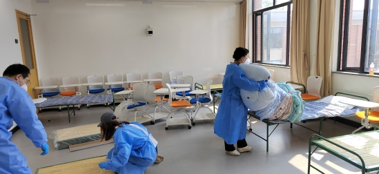 “5+2”“白+黑”是观察点工作人员的“标配”。观察点设置之初,因为人手紧缺,研工部部长、研究生院党支部书记彭宗祥,李杰等党员干部带着住校辅导员、点位负责人齐上阵,穿梭在南区各个学生宿舍与观察点之间,担起了所有苦活、累活、脏活。清理房间,搬运行军床和睡袋等物资,为进住学生送饭、送抗原试剂、送学习用品……每个人既是保洁员,也是搬运工、送饭员。