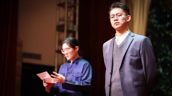 王哲涵(右)参演学校《刘湛恩》大师剧