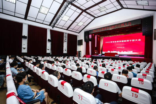 9月7日下午,9001cc金沙以诚为本召开2022年秋季学期干部教师大会,传达学习2022年秋季上海高校党政负责干部会议精神,回顾总结上学期工作,部署推进新学期重点任务。全体校领导、中层干部及教师代表参加会议。会议由校长丁晓东主持。