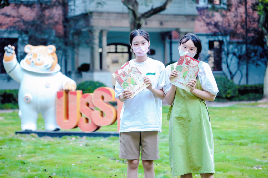 绘有校园四季风景的明信片、镂刻着学校建筑剪影的纸雕作品、带有上理标志元素的文化衫、往届学生优秀毕业设计作品集……在版艺学院的迎新点上,摆满了创意精美、形式多样的文创作品,他们大多出自学院优秀毕业生之手。当得知手中的本科录取通知书也是由版艺学子全程参与创意设计时,设计类新生徐宁静感言道:“录取通知书以及这些精美的文创作品承载着学长学姐们对母校浓浓的爱与祝福,传承着百十余年的‘上理精神’,也加深了我对专业的认识和了解,我将拿好手中的‘接力棒’,未来能够在专业上不断精进,设计出更多有内涵的优秀作品,用奋斗书写精彩的青春新篇章。
