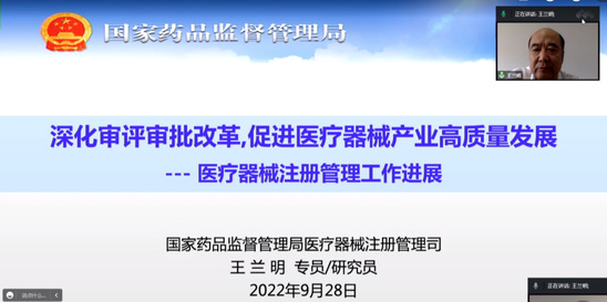 王兰明以“深化审评审批改革,促进医疗器械产业高质量发展”为主题,从医疗器械监管与产业发展、医疗器械注册管理工作以及下一步工作展望等三方面做了深入解读。