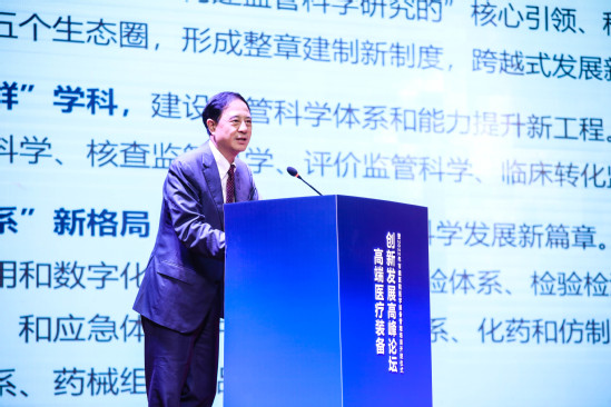毛振宾以“监管科学支撑引领高端医疗装备创新发展”为题,强调了要致力打造中国特色的药械法律法规和标准管理体系、药械审评审批、检验检测和审核查验体系,打造接轨和引领世界的中国数字诊疗装备医疗器械监管科学体系,打造中国特色的UDI监管科学体系以及中国特色药械融合产品监管科学体系等。